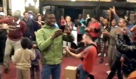 BEOGRAD - Ulični svirači, članovi benda sHpiritus mOvens održali su juče svirku u hotelu u Obrenovcu gde su smešteni azilanti. Đuskalo se uz egzotični ritam čitavih sat i po.