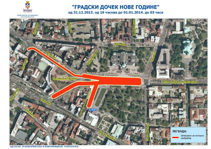 Kako je saopštneo iz gradske uprave, obim zone zatvorene za saobraćaj variraće u zavisnosti od broja posetilaca novogodišnjeg koncerta.