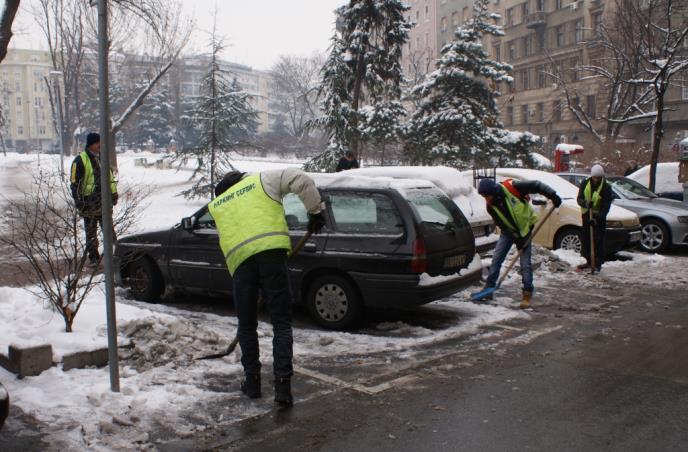 Radnici Parking servisa čistili su trotoare u okviru prve zone prioriteta na teritoriji opštine Vračar, javne površine u krugu Kliničkog centra Srbije, a učestvuju i u uklanjanju snega i leda na potezu od Trga Nikole Pašića, preko Bulevara kralja Aleksandra, do Krunske ulice.