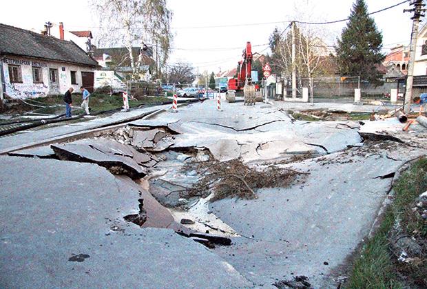 Meštani kažu da su početkom sedmice prvi put primetili da se delovi asfalta u Ulici Branka Radičevića deformišu i tonu, a kulminiralo je u četvrtak, kad je propala cela raskrsnica!