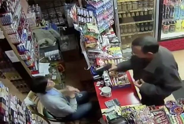 Kada je ušao u prodavnicu lopov je izvadio pištolj. Prodavačice je odmah napomenula da ga snimaju kamere i pokazala mu gde se one nalaze, ali je on više puta ponovio samo "daj pare".