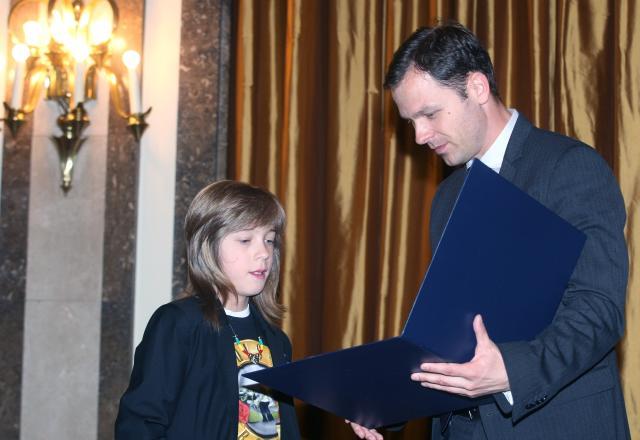 DEČAK JUNAK: Gradonačelnik Mali uručio nagradu Nikoli (10) za herojsko delo Foto: Tanjug