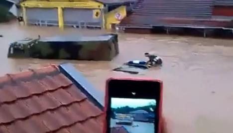 Nekoliko osoba, koje se čuju na snimku, smejalo se i snimalo vojnika koje je bujica nosila dok je pokušao da dođe do kamiona u beogradskom naselju Rakovica.