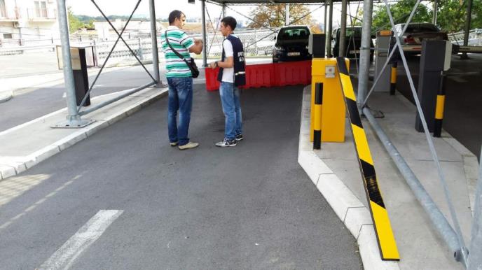 BEOGRAD - Vozač crvenog forda je danas u 15.50 časova uz pretnju pištoljem polomio rampu JKP „Parking servis“ na parkiralištu Cvetkova pijaca i potom napustio parkiralište.