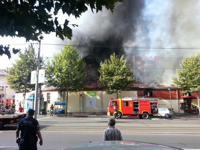 Požar je izbio jutros oko osam sati na krovnoj konstrukciji te zgrade, a potom se proširio i na unutrašnjost objekta, gde su bile tezge sa garderobom i mnogim drugim stvarima, da bi se potom sasvim urušio.
