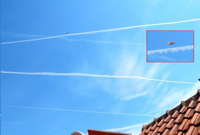 Čitalac Kurira Miloš Ćupurdija iz Borče uspeo je sa svoje kuće da osim tragova aviona uslika čak i letelicu.