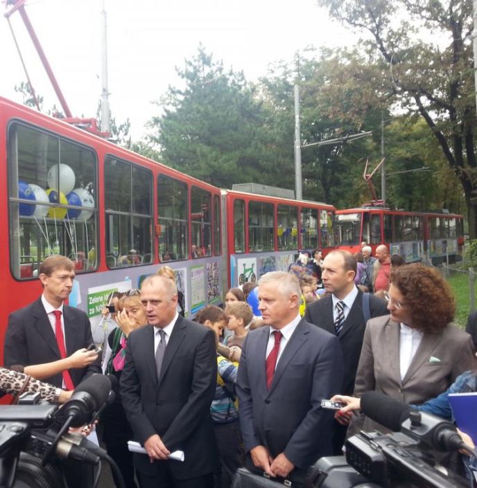 Vesić, koji se u društvu zamenika šefa Delegacije EU u Srbiji Oskara Benedikta i sekretara za saobracaj Dušana Rafailovića provozao tramvajem izbrendiranim crtežima osnovaca i srednjoškolaca, poručio je da će grad raditi na obeležavanju dve biciklisticke staze - od Novog Beograda do Bojcinske šume.