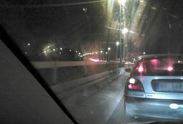 Gužva se napravila na početku mosta, i trajala je sve do dolaska dizalice koja je automobile iz manjeg sudara uklonila s kolovoza