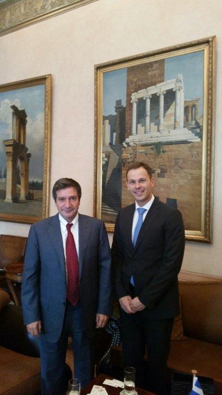 Pre sastanka sa gradočanelnikom Atine, Siniša Mali je sa državnim sekretarom Ministarstva spoljnih poslova Grčke Piterom Mihalosom zaduženim za međunarodnu saradnju razgovarao o tome na koji način prestonice Atina i Beograd mogu da doprinesu boljim bilatelarnim odnosima Grčke i Srbije.