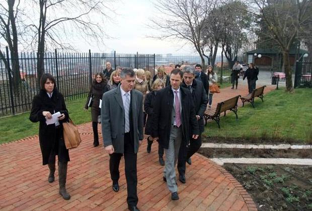 ZEMUN - Gradonačelnik Beograda Siniša Mali i predsednik opštine Zemun Dejan Matić tokom obilaska rekonstruisanog prostora oko Kule Gardoš.