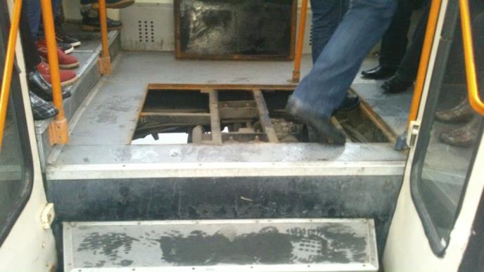 (FOTO) U CENTRU BEOGRADA: Žena propala kroz rupu u trolejbusu! Foto: čitalac Kurira