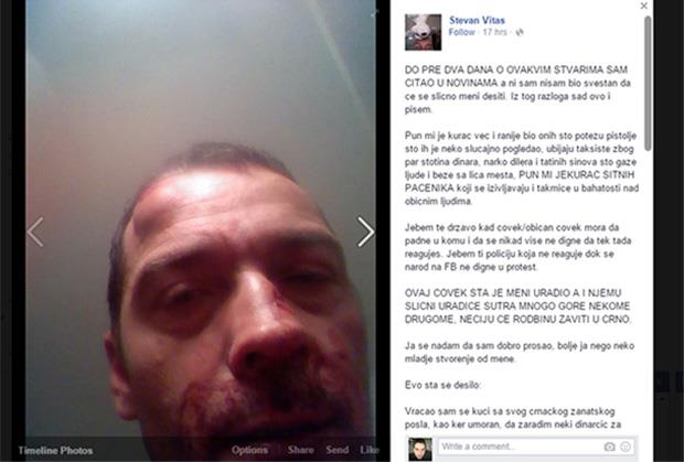 Stevan Vitas je zatim dobio batine kakve nije ni sanjao da će ikada dobiti. Zatim je odlučio da svoju priču podeli sa ljudima na Fejsbuku.