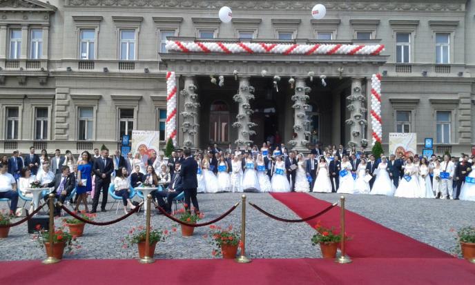 Ispred Skupštine grada oko 100 mladenaca iz svih krajeva sveta izgovorilo je sudbonosno "da". Okupljanje budućih bračnih parova počelo je u 9 sati, na Terazijama.