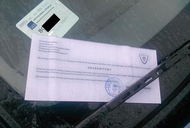 Kazne su bile odštampane na običnom papiru, bez folije i zakačeni za vetrobransko staklo vozila i to po kišnom danu tako da su se kazne slepile