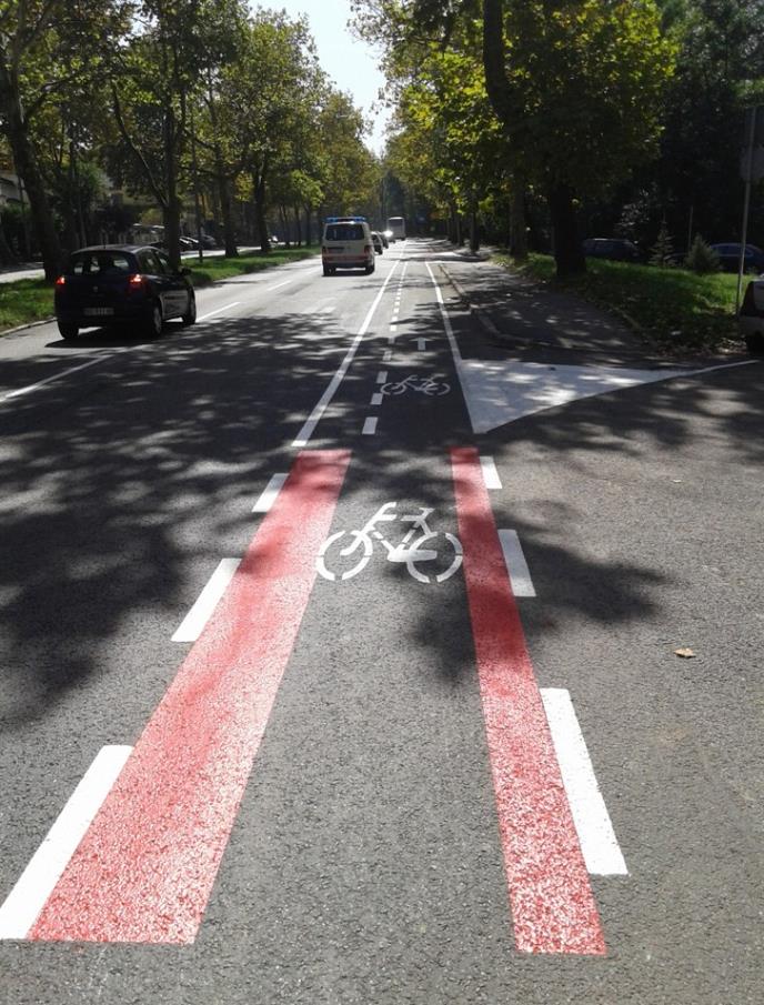 Biciklističke trake sa zaštitnim pojasom od pola metra obeležene su uz desnu ivicu kolovoza, a njih prati i postavljanje vertikalne saobraćajne signalizacije