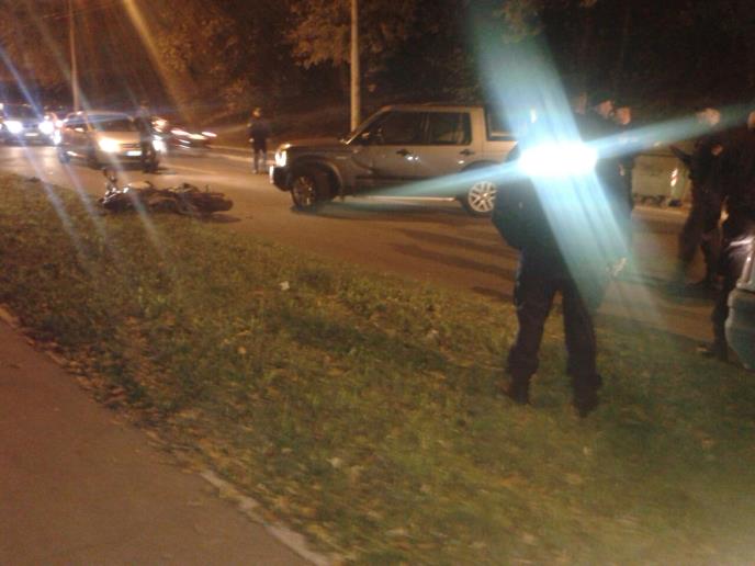 Prema prvim informacijama automobil lend rover udario je u motor i motoristu bacio nekoliko metara od mesta udesa