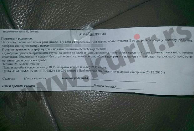 BEOGRAD - Roditelji učenika četiri osnovne škole sa opštine Rakovica - OŠ "Đura Jakšić", OŠ "Vladimir Rolović", OŠ "Ujedinjene nacije" i OŠ "Branko Ćopić" ostali su šokirani kada su dobili ponudu da njihova deca predstojeću Novu godinu proslave u jednom beogradskom klubu u centru grada.