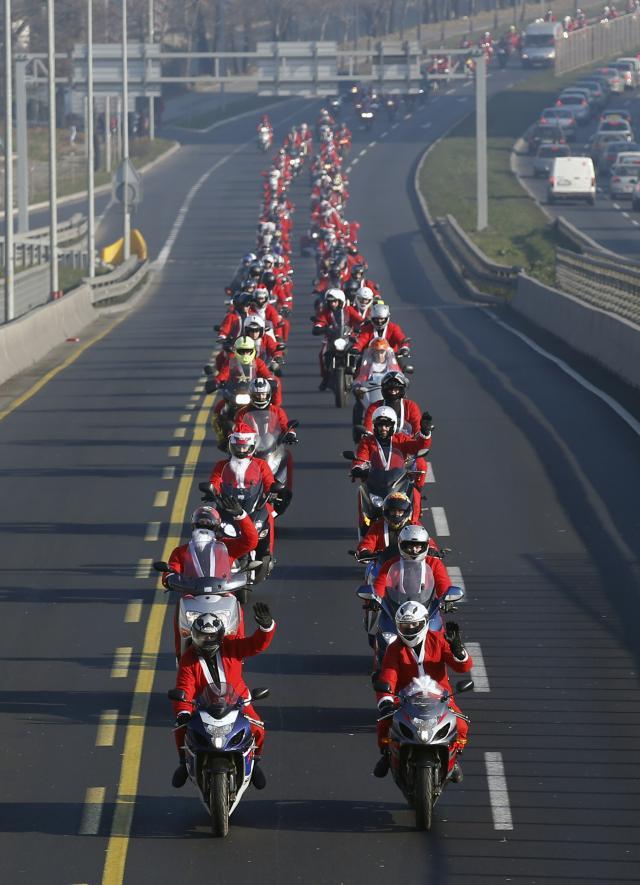 Više od 300 motociklista obučenih u kostime Deda Mraza okupilo se danas ispred Skupštine grada odakle su se uputili ka Ustanovi za decu i mlade „Sremčica” kako bi štićenike ove ustanove i ove godine obradovali poklonima za Novogodišnje praznike.