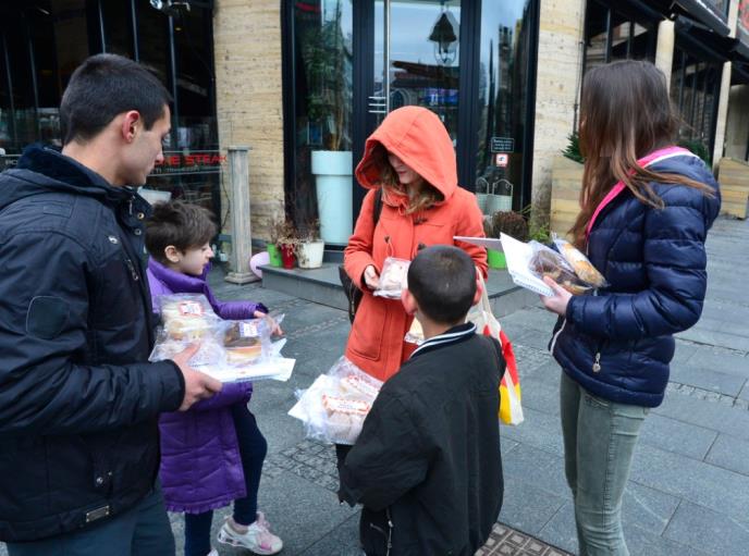 Građani su u prvi mah bili iznenađeni, ali su sa osmehom prihvatali "poklone", koje su im delili mališani. Sveže kifle, krofne i druga peciva donirala je kompanija Don Don, u saradnji sa Gradom Beogradom. Član Gradskog veća Dragomir Petronijević kazao je da kroz ovakve akcije Grad želi da nauči decu da i oni pomažu drugima.