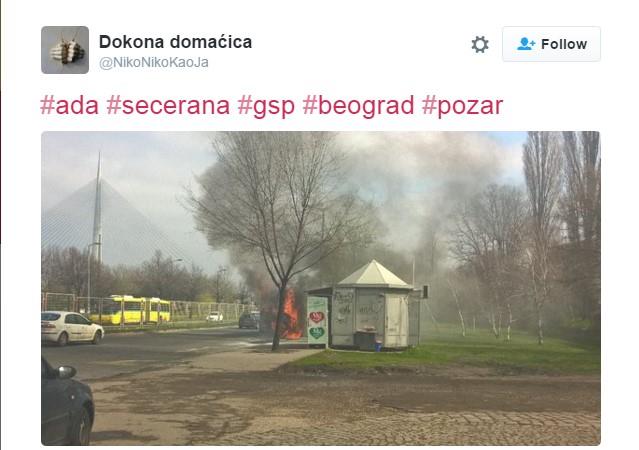 Na autobuskoj stanici kod Ade Ciganlije danas u 10.45 sati u Radničkoj ulici u smeru prema gradu zapalio se prigradski zglobni autobus sa linije 860 i vatrogasci su na licu mesta.