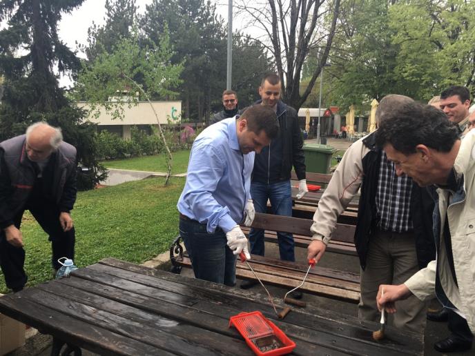 "Ovo je jedna kompletan sportski centar koji na raspolaganju ima bazene, teniske terene, sprave za oblikovanje tela, atletsku stazu, kao i fudbalske i košarkaške terene, zbog čega je omiljeno mesto Zvezdaraca, ali i drugih Beograđana", istakao je Nikodijević, koji se priključio akciji farbanja klupa i mobilijara u parku.