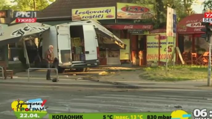 (FOTO) SUDAR U ZORU NA LINIJI 708 Kombi uleteo u kiosk brze hrane posle sudara s gradskim autobusom!