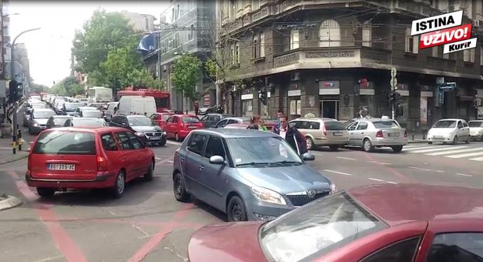Zbog sudara koji se danas oko podneva dogodio u Takovskoj ulici stoji saobraćaj u centru Beograda.