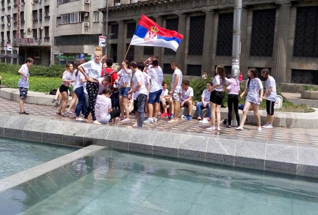 (KURIR TV) VESELO U CENTRU BEOGRADA: Osmaci kraj škole proslavili u fontani!