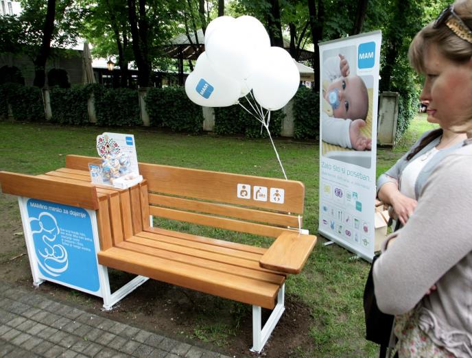 U Tašmajdanskom parku u Beogradu jutros je postavljena prva klupa za dojenje u okviru projekta, čiji je cilj da skine tabu koji postoji u društvu u vezi sa dojenjem na javnom mestu.