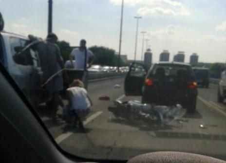 Motociklista je naleteo na putnički automobil na Brankovom mostu, što je praktično zaustavilo saobraćaj.