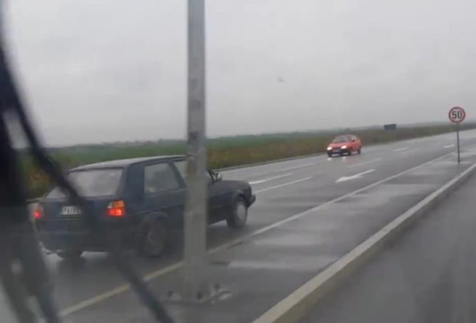 BEOGRAD - Vozači kamiona su zabeležili nesvakidašnju situaciju na obilaznici Pupinovog mosta u kojoj vozač automobila Pančevačkih tablica vozi suprotnim smerom.