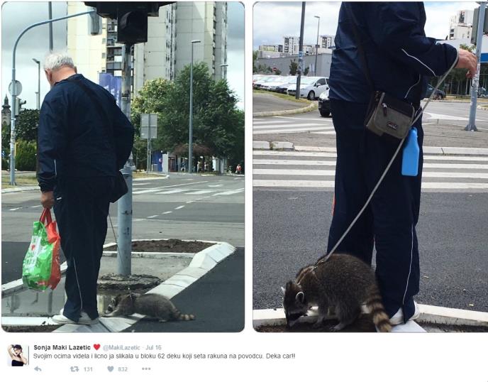 Rakuna Blažu preksinoć je, na povocu, prošetao čovek u novobeogradskom bloku 62. Već sutradan, ljudi su putem društvenih mreža delili svoja iskustva sa njim, proglasili ga maskotom ovog bloka, ali i osuđivali ovaj čin. Najviše je onih koje je njegova umiljatost potpuno osvojila.