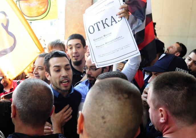 Predstavnik Inicijative "Ne da(vi)mo Beograd" Dobrica Veselinović negirao je da su predstavnici te inicijative napali gradonačelnika Beograda Sinišu Malog.