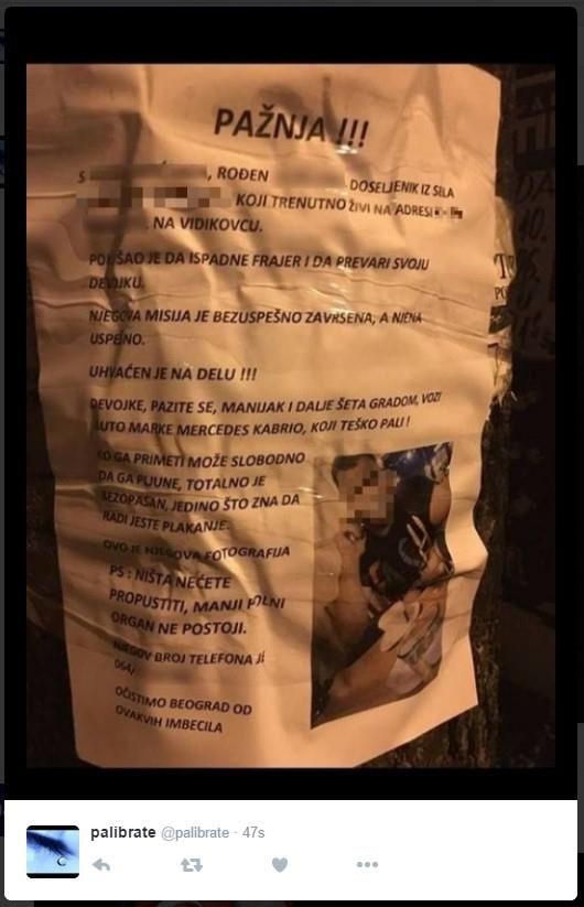 Smislila je žestok način za to. Odštampala je poruku svim ženama koje ga budu srele, i zalepila na bandere širom Beograda.