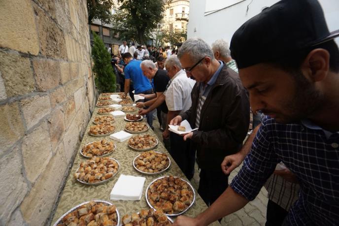 Ispred Info pulta, u redu za ručak koji dele volonteri čekalo je pedesetak ljudi, uglavnom mlađih, ali ove godine, za razliku od prošle, nije bilo bajramske sofre.