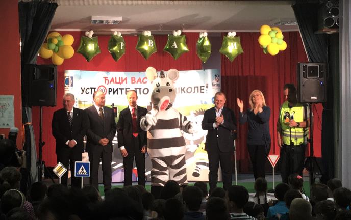 Događaju je prisustvovao gradski sekretar za saobraćaj Dušan Rafailović, kao i predstavnici Saobraćajne policije, Auto-moto saveza i OŠ „France Prešern”, a sa decom se družio i hor „Čarolija”. Cilj akcije „Đaci vas mole, usporite pored škole” jeste bezbednost dece u saobraćaju, tako što se deca kroz grupne predstave i edukativne časove uče kako da se ponašaju na putu od kuće do škole, kako pravilno da prelaze ulicu, koriste semafor i tumače saobraćajne znakove. Akcija se sprovodi uz saglasnost Sekretarijata za saobraćaj, Sekretarijata za obrazovanje i dečju zaštitu i uz podršku Uprave grada Beograda i Saobraćajne policije Beograda.