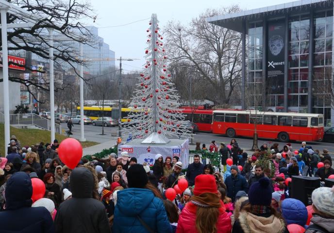 Mališanima u ispisivanju poruka za novogodišnju jelku pomagali su đaci Škole za dizajn, dok je program ulepšao nastup Dečjeg hora RTS-a i Minja Subota.