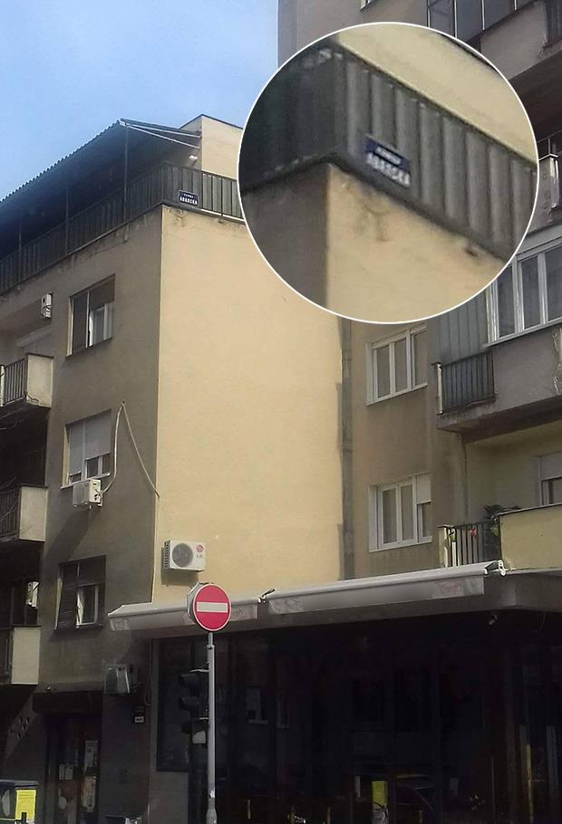 Ostali prolaznici morali bi da imaju oko sokolovo, s obzirom na to da se tabla sa nazivom ulice, verovali ili ne, nalazi na ogradi terase na samom vrhu jedne stambene zgrade.