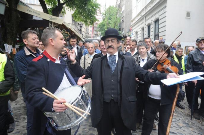 Čast da ove godine podigne zastavu Skadarlije na kojoj je štap, šešir i karanfil, pripala je poznatom beogradskom glumcu Tihomiru Arsiću.