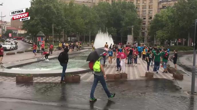 (KURIR TV) MATURANTI SE KUPAJU NA TRGU NIKOLE PAŠIĆA: Ni nevreme im ništa ne može!