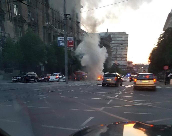 Na slikama koje smo dobili vidi se gust dim ispod raskrnice ulica Kneza Miloša i Nemanjine ali se ne vidi tačno šta se zapalilo.