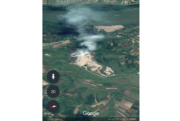 Iako je bio vidljiv golim okom, crni dim nad Vinčom zabeležen je i na nesvakidašnji način - evo šta je snimio Guglov softver Google Earth.
