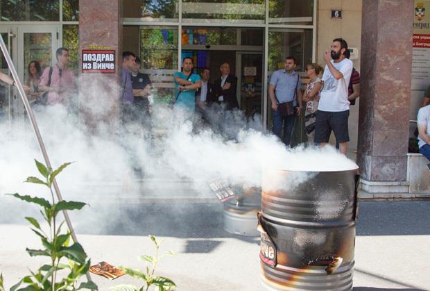 BEOGRAD - Inicijativa “Ne da(vi)mo Beograd” je uoči današnje sednice Skupštine Grada, izvela svojevrstan performans kojim je želela da ukaže na alarmantno stanje u Vinči, gde se već danima dimi deponija.