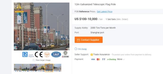 Videli smo već po primeru muzičke fontane na Slaviji kako gradska vlast raspolaže novcem građana, pa, da se ne bi previše razbacivali, nudimo im nekoliko jarbola iz Kine sa Alibabe. Ovi jarboli su manji nego onaj planirani na Ušću, ali je njihova cena sasvim prihvatljiva, a verovatno je da KInezi po nekoj dobroj ceni mogu da naprave sve što Siniša Mali i ekipa izmaštaju.