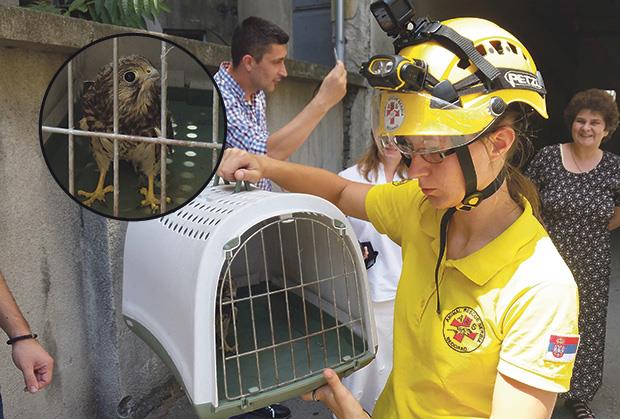 Članovi specijalizovane volonterske organizacije Animal Rescue Serbia, koja se bavi spasavanjem životinja, juče su pokazali hrabrost i umeće spasivši mladunče vetruške, ptice iz porodice sokolova, sa zgrade Opštine Stari grad.