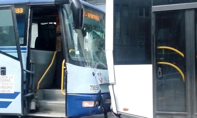(FOTO) SAOBRAĆAJKA: Sudar autobusa u Sarajevskoj, 3 osobe lakše povređene