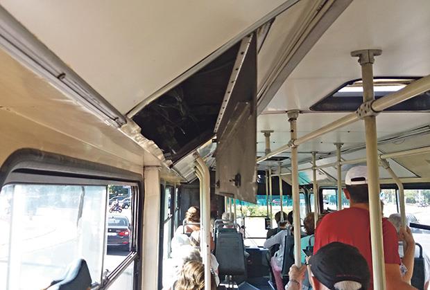 Deo plafona je visio dok je autobus prelazio redovnu turu.