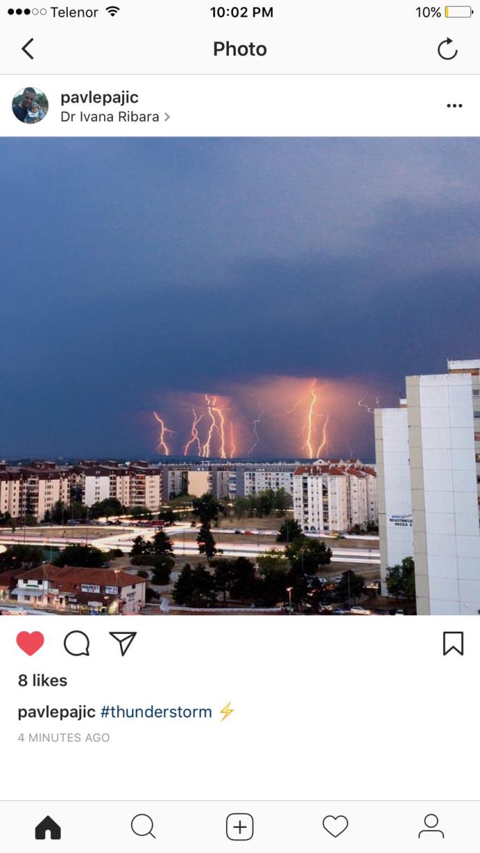 "Oblačnost koja širom zapadne Srbije uslovljava jake pljuskove sa grmljavinom, lokalnom pojavom grada i olujnim vetrom u naredna 2 časa zahvatiće najpre Srem i Šumadiju sa tendencijom daljeg premeštanja na severoistok.