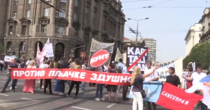 Oni protestuju ispred zgrade Vlade Srbije, ali su posle nepuna dva časa protesta izašli i na samu raskrsnicu posle čega je saobraćaj stao.