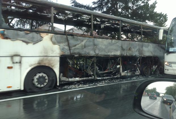 - Autobus Beograd - Prijepolje izgoreo je u potpunosti na stajalištu kod motela "Šarić" na Ibarskoj magistrali, kod Lipovačke šume - kažu u MUP.